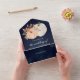 Dusty Peach Floral Pumpkin Navy Blue Wedding All In One Invitation