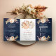 Dusty Peach Floral Pumpkin Navy Blue Wedding Tri-Fold Invitation