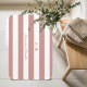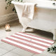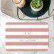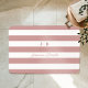 Dusty Pink and White Wide Stripes Monogram Name Bath Mat