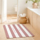 Add a touch of personalized elegance to your bathroom with this dusty pink and white striped bath mat. This design features wide, horizontal stripes in a classic color combination, offering space for a custom monogram. This plush and absorbent product is visually appealing and provides a comfortable and safe surface. Enhance your home with this stylish and preppy accent.