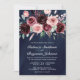Dusty Pink Burgundy Floral QR Code Navy Wedding Invitation