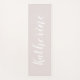 Custom-designed yoga mat featuring personalized calligraphy name on dusty pink background.