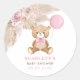 Dusty Pink Floral Boho Teddy Bear Baby Shower Classic Round Sticker