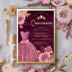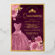 Dusty Pink Floral Gown Plum Quinceanera Gold Foil Invitation