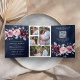 Dusty Pink Plum Purple Floral QR Code Navy Wedding Tri-Fold Invitation