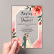 This elegant watercolor floral wedding acrylic invitation is perfect for a modern wedding. The romantic design features a sleek watercolor floral frame with a bride and groom illustration and black calligraphy on a white background.
