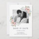Trendy midsummer save the date photo card featuring classy chic floral bouquet with roses and peonies painted in neutral soft colors of dusty rose pink, cream, peach, dusty blue, and soft sage greenery shades. This collection is perfect for classic vintage style watercolor wedding themes. Please find more matching designs and variations from my "blissweddingpaperie" store. And feel free to contact me for further customization or matching items.