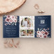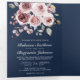 Dusty Pink Roses Navy Blue QR Code Wedding Tri-Fold Invitation