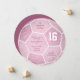 This cute soccer themed birthday party invitation features the stylized image of a soccer ball that has a subtle artsy kaleidoscopic pattern blended with shades of dusty pink, upon which you can customize all the party details - by katz_d_zynes