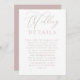 Plain white envelopes are included with paper invitations and will come to fit the invitation size you select. If you don’t need the envelopes, you may choose to not receive them by selecting the dropdown below "Envelopes" and choosing "None." If you’d like to have a design on your envelopes, you can browse all of these available envelopes to find the design that complements your Dusty Pink Wedding Digital Details Enclosure Card.
