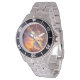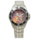 Has heft and feel of expensive stainless steel quartz watches. Good band with safety catch. I removed links, which is easy because engraved arrows show direction to push the linking pins. As always by this seller, the image (a railroad logo) is a perfect reproduction of my emailed image, and is precisely spaced and aligned.