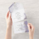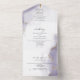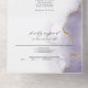 Dusty purple and gold soft marbled watercolor with glitzy gold highlights - each section highlighted with a sheer white overlay, all in one wedding invitations with pre-addressed detachable meal choice rsvp for your guests to easily mail back - Easy to customize template.