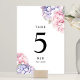Dusty Purple Blush Pink Hydrangea Wedding Table Number