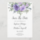 These save the date cards feature a watercolor floral design with dusty purple roses and eucalyptus foliage. Personalize them with your text.