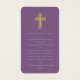 An elegant and thoughtful tribute for a loved one. A feminine and ornate gold oval frame frames the deceased person's photograph. Three lines of text below allow you to personalize it. I chose in Loving Memory, their name and life dates. A fancy sparkling gold cross is on the top of the back. Below there is space for a prayer, psalm or poem. The background is soft dusty purple.
