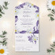 Dusty Purple Iris White Daisy Botanical Wedding All In One Invitation