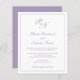 Traditional style budget wedding invitation featuring a simple and classic design with your two initial monogram and your names in an elegant calligraphy inside of a thin border. All design elements are in dusty purple over a white background and may be changed in the design editing tool. This classy design is perfect for a formal wedding.