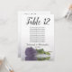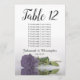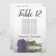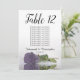These beautiful table number cards will make it easy for your guests to find their seats at your wedding reception. They feature a simple yet elegant design with script calligraphy lettering and a single long-stemmed dusty purple colored rose lying on its side reflecting in water. The card includes a seating chart with 10 names. There is also space for the couple's names and wedding date. This card is available in a variety of sizes and is larger than our standard table number cards.