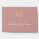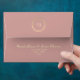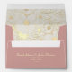 Simple, elegant, modern ivory beige and dusty rose addressed 5x7 envelope for wedding invitations with unique, sophisticated gold floral lace inside, return address and monogram at the top cover.