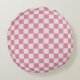 Pink and white checkerboard pattern with evenly spaced squares. The design is simple, creating a playful and retro feel.