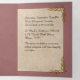 Fairy tale style wedding invitation done in a dusty rose colored, antique book looking tri fold. The outside front is done in an old antique dusty rose book cover look, with graphics of gold decorations. The inside is done in antique looking paper, with gold tone corner decorations. The inside middle section has a custom photo slot ready for your picture. Personalize all the text fields for your special wedding announcement.