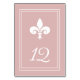 Elegant and simple Wedding Table Card featuring a fleur de lis against a Dusty Rose background. This design is a unique choice for a modern wedding. Easy to customize with the appropriate table number(s). Click "Customize It" to find more personalization options.