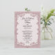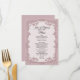 Chic dusty rose wedding table menu with graphics of a rose flower garland frame. Lovely addition to your wedding reception tables. Personalize the text for your reception needs.