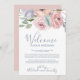 These dusty rose florals welcome letter & itinerary cards are perfect for a spring or summer wedding. The romantic floral design features lilac purple, blush pink and peach flowers arranged in a gorgeous soft pastel bouquet. The front of the card features a welcome letter and the back of the card features the wedding itinerary. These notes are perfect for destination weddings and hotel guest welcome bags.