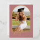 Honor your graduate's achievement with this elegant dusty rose pink and gold-themed graduation announcement. Featuring a bold gold-foil "Graduate" calligraphy script, and space for a large photo in a modern arched frame, this design exudes sophistication and charm. Perfect for high school or college graduations, it blends modern style with timeless elegance. Personalize with your details to create a memorable keepsake.