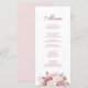 An elegant dusty rose hydrangea wedding menu card featuring soft blush floral accents and refined typography. Perfect for romantic garden receptions and spring wedding celebrations.