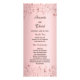 An elegant and modern wedding program. Templates for your names, dates, details of the ceremony and the party. A dusty rose, pink faux metallic looking background, decorated with rose gold shining stars. Black colored letters.