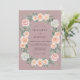 This design features lush pink roses and creamy white hydrangeas nestled among delicate sage green foliage. Set against a warm dusty rose background, these botanical elements create a romantic and serene atmosphere. The muted color palette of peach, ivory, and mauve provides an elegant aesthetic for a spring or summer event.