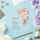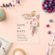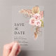 Amaze your guests with this elegant save the date featuring beautiful blush pink flowers and dried palm leaves.