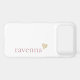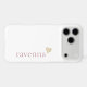 This personalized phone case features a clean white background with a custom name written in a soft dusty rose font. A small gold leopard print heart at the end of the name adds a trendy animal print accent that gives the design a fashionable and feminine look. The combination of dusty rose and leopard pattern reflects current style trends while keeping the design simple and elegant. The gold effect is printed color only and does not contain real metallic shine. Add any name to create a unique phone accessory that also makes a stylish gift for friends, teens or anyone who loves personalized designs.