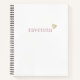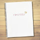 This elegant notebook design features a white background with a personalized name written in a simple dusty rose font. At the end of the name there is a small gold leopard print heart that adds a trendy animal print accent. The soft dusty rose color combined with the bold leopard pattern creates a modern and feminine stationery style. The gold effect is printed color only and does not contain real metallic shine. Personalization allows you to add any name, making the notebook perfect for journaling, school notes, planning or everyday writing.