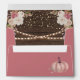 Elegant envelope featuring beautiful flowers and wood background on the inside and dusty pink color with cute pumpkin on the outside.