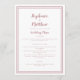 A simple and elegant wedding menu featuring a double-frame border in dusty rose pink on crisp white. The design showcases the couple’s first names in romantic script at the top, creating a personalized focal point for your reception table. Beneath the event date, a smaller “Wedding Menu” heading introduces your dinner selections in clean, traditional typography. The back of the card is finished in solid dusty rose for a cohesive, refined presentation