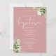Dusty Rose Pink Greenery Floral Monogram Baptism Invitation