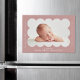 Simple and modern birth announcement magnet featuring your baby's photo nestled inside of a dusty rose scalloped frame. Personalize the birth announcement magnet by adding your baby's name and additional information in white lettering.