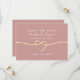 Announce your big day in style with this elegant dusty rose save the date card, featuring modern calligraphy script, a gold rope heart, and a soft romantic blush background. Perfect for minimalist or neutral-themed weddings, this design sets the tone for a chic and heartfelt celebration. Personalize with your names, date, and message to make it truly yours.