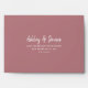 Chic, modern and simple self-addressed RSVP envelope with your names in white elegant handwritten script calligraphy on a dusty rose background. Simply add your names and address. Exclusively designed for you by Happy Dolphin Studio.