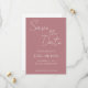 Simple style wedding save-the-date invitations that feature white, stylized script on a trendy, dusty rose color background. Edit and replace names, date, and location with your own. Select your invitation size and paper style.