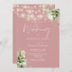 Dusty Rose String Lights Floral QR Code Wedding Invitation