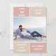 Dusty rose and taupe color block wedding Save the Date card. The back includes a pattern with wide bands in dusty rose and taupe.