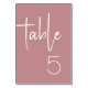 Modern table numbers elevate your wedding reception table décor. The design features an elegant script font in white on a dusty rose earth tone background perfect for a fall wedding or banquet event. Order each table number from the collection or edit this card for each number needed. The design is printed on both sides.