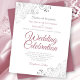 These affordable, budget friendly wedding invitations are the perfect choice for class, style, and beauty on a budget. The design features dusty rose or mauve pink and gray text on a classic white background with ornate silver gray curls and swirls in the corners. The typography includes fancy script lettering for a style that is at once simple and elegant. Wonderful way to invite your friends and family to share in your joy on your special day without breaking the bank.