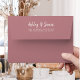 The Dusty Rose White Script Return Address design features elegant white lettering on a soft dusty rose envelope. Perfect for weddings, bridal showers, or romantic celebrations, this envelope adds a warm, polished touch to your invitation suite. The modern script and serif typography create a timeless look, while the muted rose color complements both minimalist and floral stationery styles.