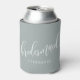 This elegant bridesmaid can cooler in a soft dusty sage color features modern script text, perfect for celebrating your special day in style. Customizable with each bridesmaid’s name, this sleek design makes a thoughtful and functional gift for your bridal party. Ideal for wedding day festivities, bachelorette parties, and bridal showers, this stylish can cooler keeps drinks cold while adding a personal touch.