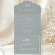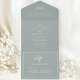 This all-in-one invitation features a dusty sage green backdrop paired with a modern script font, exuding minimalist elegance. The clear and easy-to-read design ensures your guests receive all the essential information for your wedding celebration.