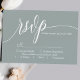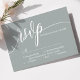 This dusty sage green RSVP card features a modern calligraphy script font, adding a touch of timeless grace to your wedding stationery. The minimalist design keeps the focus on the RSVP details, ensuring a clear and stylish response from your guests.